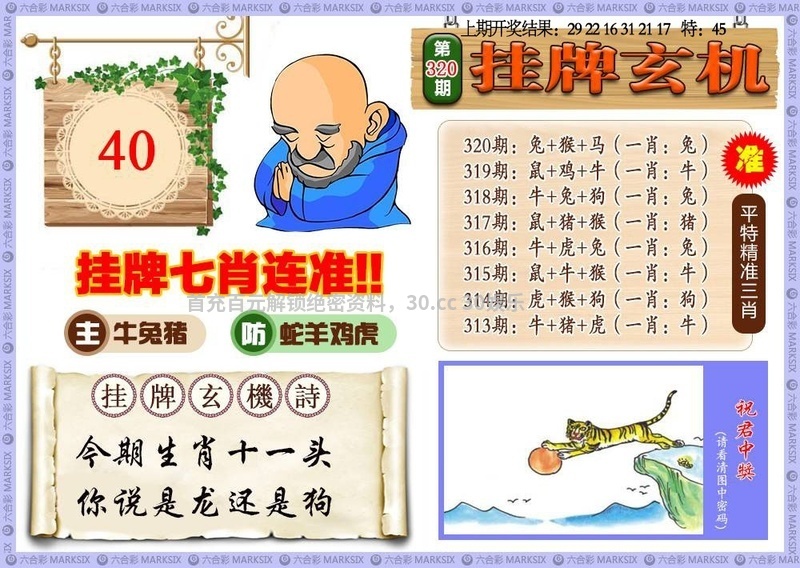 | 314期七肖 | 牛鼠狗猪羊猴马 | 开:羊23 |