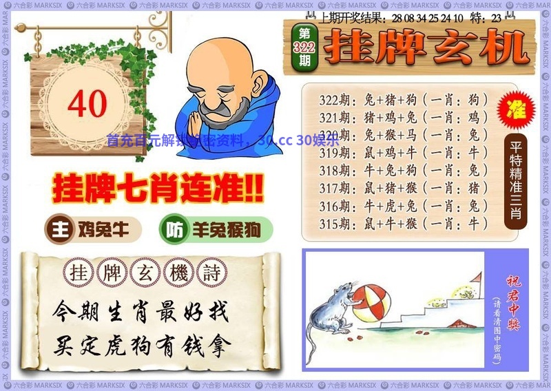 | 317期七肖 | 狗鼠猴羊牛蛇马 | 开:鼠18 |
